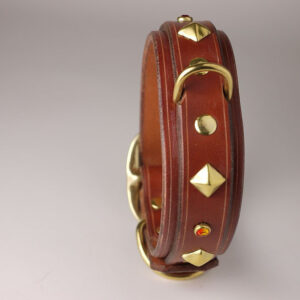 Brown Leather Dog Collar with Brass Unique Stud