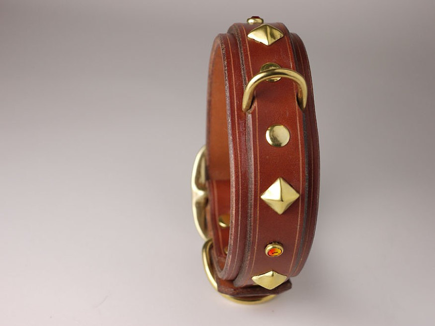Stylish Leather Dog With Multi Colour Studs